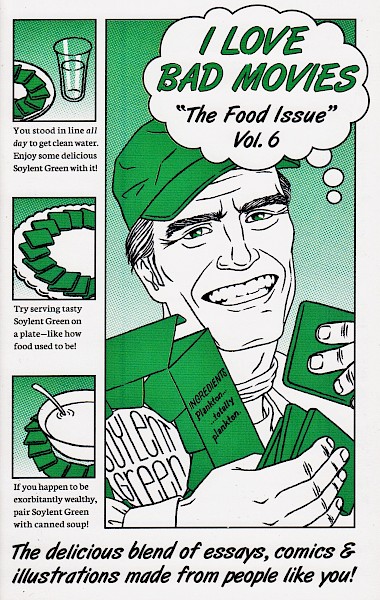 The new issue of the ever-wonderful I Love Bad Movies zine. Writers, artists, comedians, and film nerds take on the subject of food in film. Twenty-eight movies are reviewed in-depth, odd stills, fine illustrations and comics ensue.