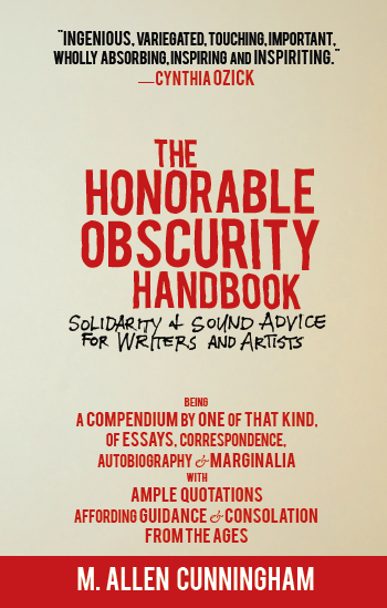 The Honorable Obscurity Handbook: Solidarity + Sound Advice For Writers and Artists is a playful book of great depth. The book version of a mixtape. "Part consoling sourcebook, part cultural commentary, part wry self-help manual, and part inspirational anthology, this slim volume is a celebration of the creative spirit, packed with insights relevant to any creative worker, whatever their field."