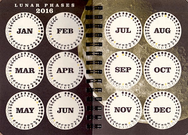 Plus: A gorgeous lunar phase calendar, 2016-at-a-glance, title page, table of contents, and a notes section at the back.
