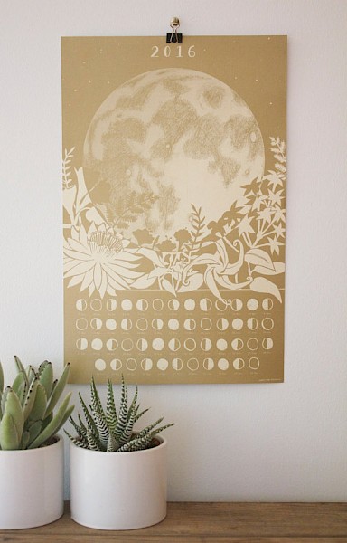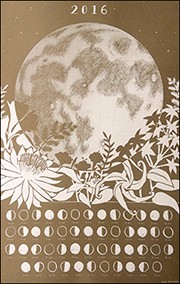 The 2016 Lunar Phase Calendar. A ridiculously gorgeous creation showing the moon rising over night-blooming flowers (Queen of the Night, Nicotiana, Moon Flower, Four O'clocks, and Angel's Trumpet).