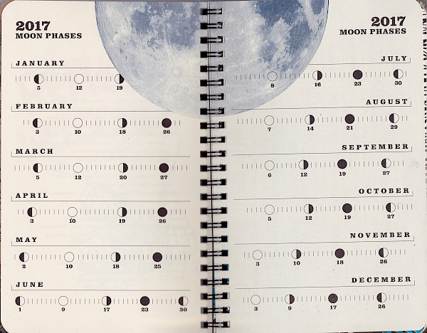 Plus: A gorgeous lunar phase calendar, 2016-at-a-glance, title page, table of contents, and a notes section at the back.