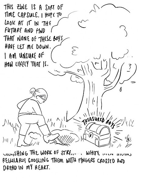 Temporary sale! In her short illustrated essay A Few Good Boys, M. Sabine Rear writes about growing up surrounded by art from straight white men and the hoops she had to go through to relate to it. She also writes about the men she holds onto, and her dread that they might one day be revealed as monsters.