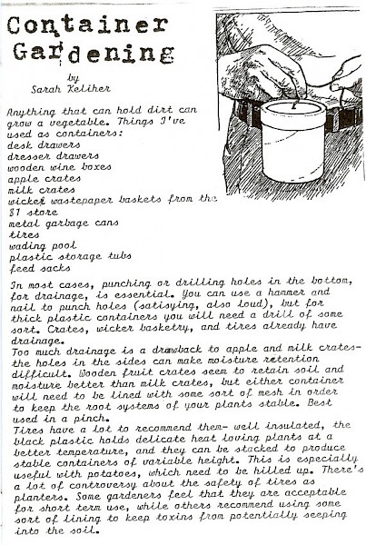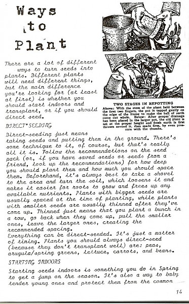 With writings from Sarah Keliher, Sarah Tavis, Jeff Shannon, Hannah Horovitz, and Rylie Thayer. Based on gardening in the Pacific Northwest, but is kept pretty general throughout. Includes images from vintage gardening books and vintage children's books, typed on a cursive typewriter.