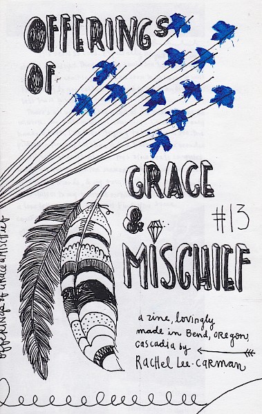 In our effort to stock ever in-print zine Rachel Lee-Carman has ever made, we bring you a classic from her catalog: Offerings of Grace & Mischief #13. Her sketchbook-style personal zines are glorious, emotional roller-coasters through life being fully lived on earth and this one is no exception. Art studios, nettles, crows, good friends, the year of the horse, folk bands, a survey of winter vegetation, and so much more.