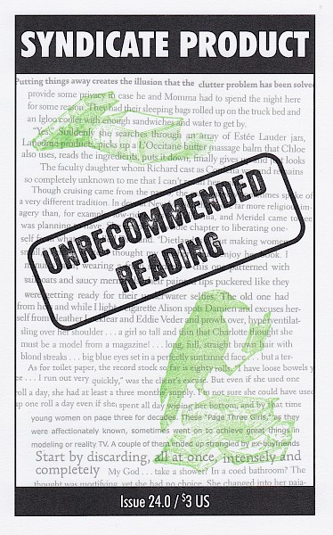 Syndicate Product, one of the all-time great compilation zines, returns with Unrecommended Reading. Ten contributors write about the books that disappointed, angered, or otherwise drove them nuts. Within: Hallmark-level hatred, revolutionary fails, anti-Anne of Green Gables, and the life-changing magic of being okay with your mess.