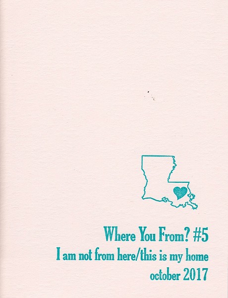 In this, the fifth issue of Hope Amico's long-running Where You From zine series, she examines the idea of moving back home to a place you are not from. A year-long commute between Baton Rogue and New Orleans serves as the jumping point into stories, observation, and endless conversations about home and place. As always, a zine very worth picking up.