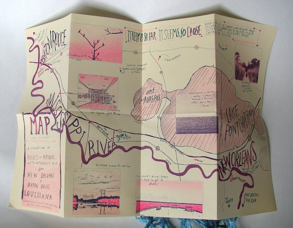 Includes an 11" x 17" New Orleans hand-drawn map with photos. Riso-printed in two colors.