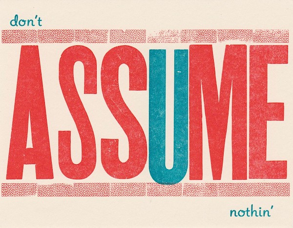 Allowing for possibilities, thinking outside boxes, no assumptions. From letterpress artist Hope Amico. 4x5. Part of her letterpressed postcard subscription series.