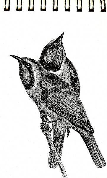 Golden-fronted leafbirds in their natural habitat (on a notepad).