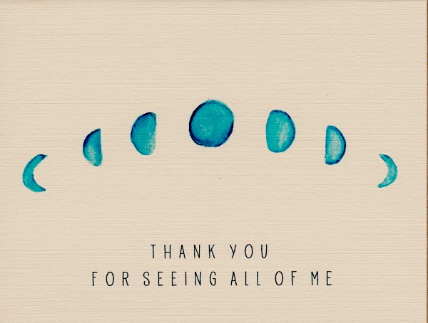 Blank inside. Printed on thick, textured creme linen cardstock. Hand-folded, comes in a slipcover with a tan envelope.