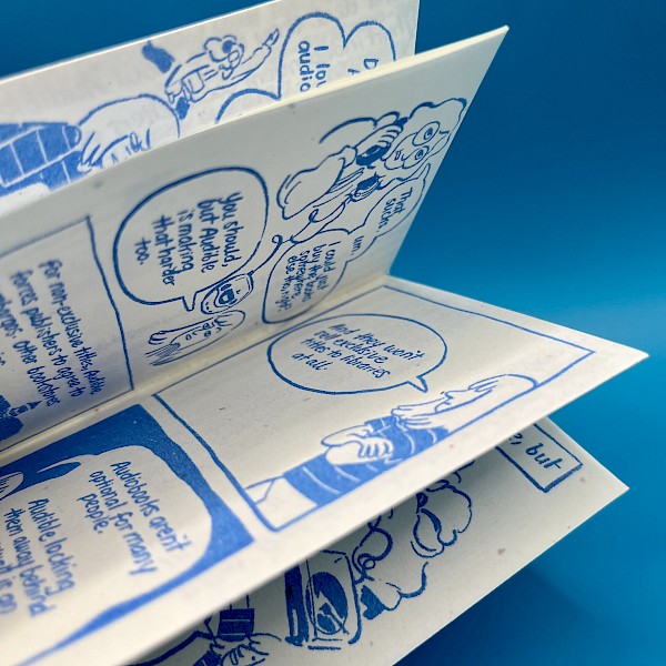 8-page mini zine, folds out to a single sheet with an annotated bibliography.