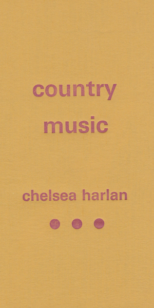 Chelsea Harlan's Country Music is a book of poems about ecstatic experience in the modern world. Farm life, smartphones, nostalgia, the car radio.