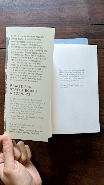Loaners is the story of Street Books, a mobile library founded in 2011 to serve people living outside in Portland, Oregon. It's also an oral history of a friendship between the library's founder and its most dedicated regular, a report from the frontlines of Portland's housing crisis, an informal DIY guide to creating a DIY library, and a sweet and page-turning book of bite-sized bits that add up to a much larger whole.