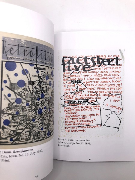 From the publisher: "Zinelandia: Cover Art from the Factsheet Five Era (1982-1998), traces the development of zine cover illustration through a transformative period when self-publishing flourished under the influence of the review publication, Factsheet Five. Edited first by Mike Gunderloy (1982-1991) and later by R. Seth Friedman (1993-1998), the magazine nurtured a vast creative community through mutual exchange, providing a platform for independent voices and radical self-expression. This work attempts to champion Factsheet Five’s historical importance on the cultural landscape of its time. Examining the covers in this collection, we witness the evolution of zine culture from the early years of stolen office photocopy to laser printing at home. The covers provide a panoramic view of zine culture at the twilight of the Twentieth Century—its art, concerns, creative spirit and clamor for community. Drawn from the collection of the author, Zinelandia is sourced from fifteen countries, their cover art breadcrumbs through the transitional time they traversed."