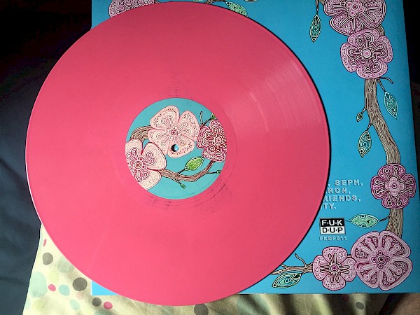 Limited edition of 300 hand-numbered copies. 150 copies on pink vinyl, 150 copies on black vinyl with silk-screened Phoxii patch.