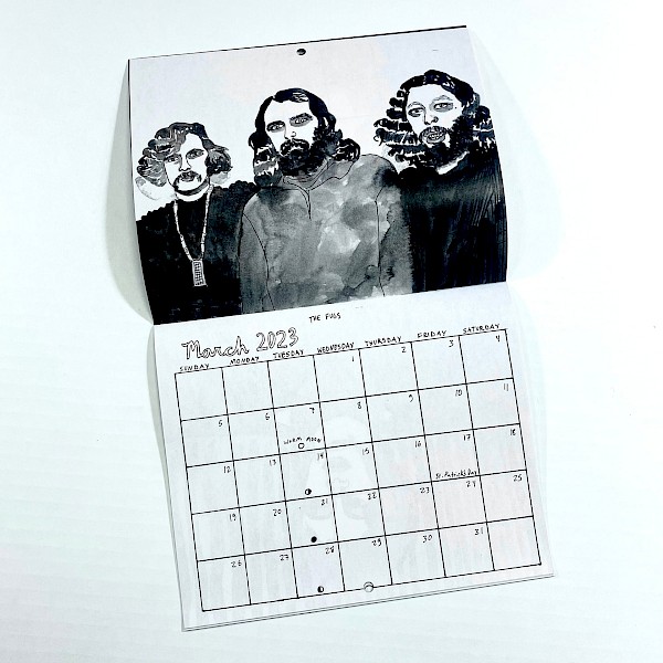 Black & white, hole-punched. With major holidays, phases of the moon, and a page for notes. 7.5" x 14" when unfolded. Limited edition!