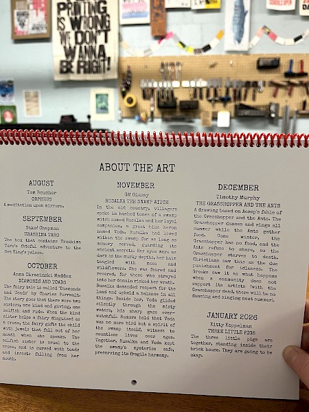 This calendar is a fundraiser for Community Print, with all proceeds directly benefiting their work.