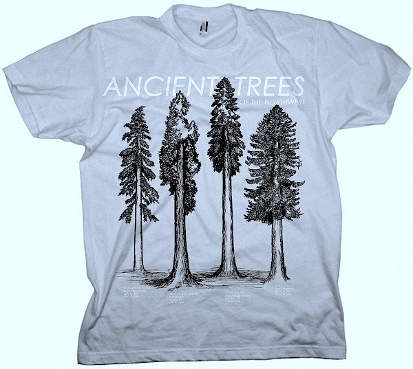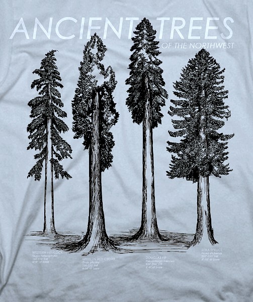 Ancient trees of the Northwest, posing for their portrait. Respectively: Western Hemlock, Western Red Cedar, Douglas Fir, and Sitka Spruce.