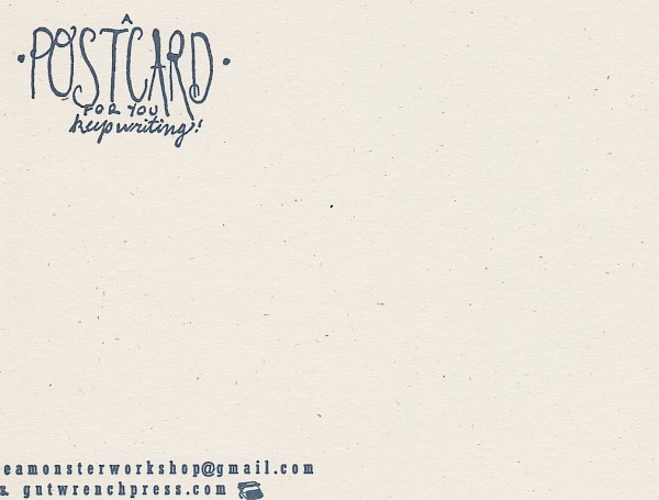 4" x 5" letterpressed card. Part of Gutwrench Press' Keep Writing postcard series.