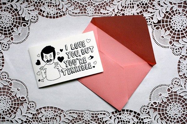 An anytime valentine for that very special someone. (Or just, you know, your friendly neighborhood Bob's Burgers fan.)