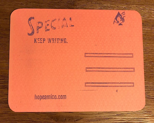 Rest up first. Part of the long-running Keep Writing postcard project.