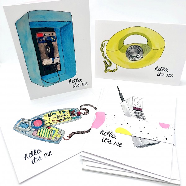 A pack of four greeting cards from Candace Jane Opper's excellent vintage phone series.