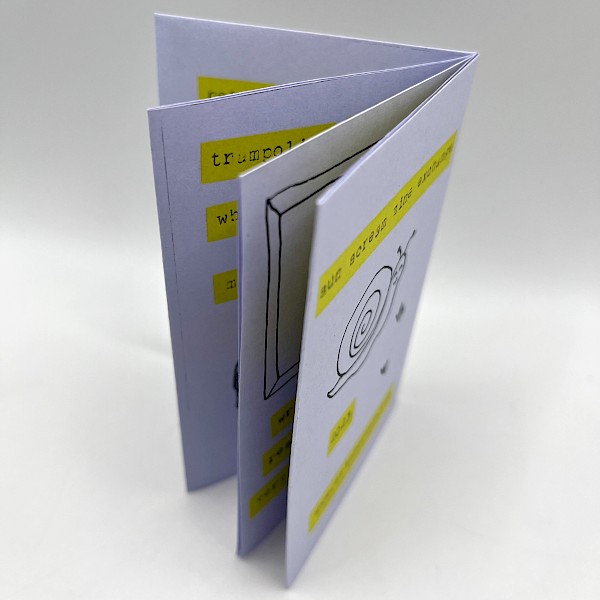 8-page mini zine, cover color varies. Hand-drawn illustrations, cut-and-paste typewriter text.
