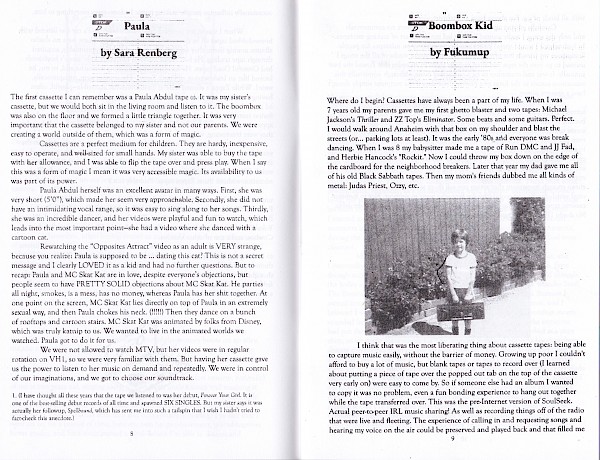 A zine in tribute to a maligned beauty of pop culture's past: the compact cassette tape. Twenty writers, musicians, DJs, label owners, publishers, and comic artists tell stories of how cassette tapes have affected their lives, for better or worse.