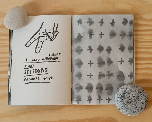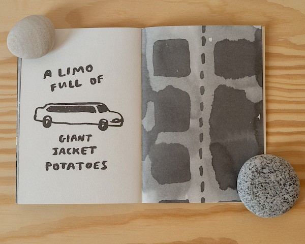 40 pages, handmade pocket-size paperback. B&W offset print, sewn & glued perfect binding. Printed on Arctic Munken Print Cream 115 and Pure Rough 300. Published by Bored Wolves.