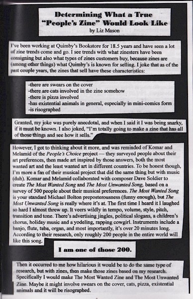 Pieces from some of our favorite folks: our very own Gina Sarti (DRIVEL), John Porcellino (King Cat), Todd Taylor (Razorcake), Liz Mason (Caboose), Ed Kemp (I Fucking Love This Album), Frederick Moe (Tin Can Telephone), and many many more.