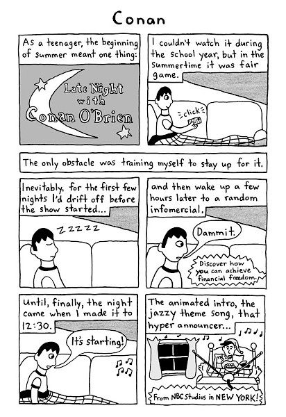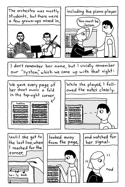 Continuing in his tradition of comics that casually make one's heart swell, Jason Martin's latest issue of Black Tea is an assortment of life's small joys. Within: home-dubbed cassette tapes, centuries of poetry about the moon, the absurdist pleasures of Late Night with Conan O'Brien in the '90s, crying to a Casiotone for the Painfully Alone party anthem, and Jason's brief career as a piano page turner.