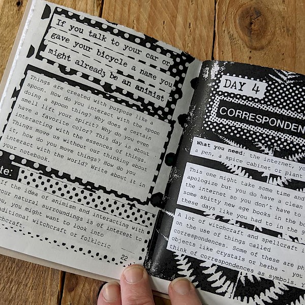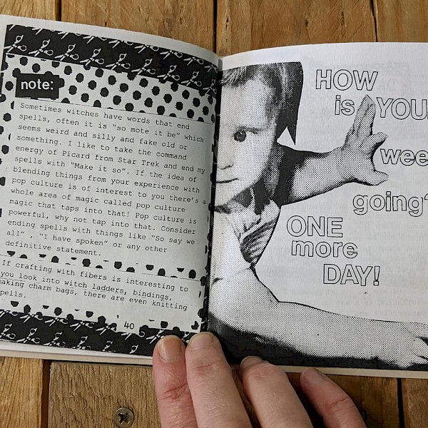 Within: cleaning-as-cleansing, everyday altars, grounding and centering, perception and animism, correspondences, sigils, spells, divination, and more. An open and accessible zine that thinks about witchcraft in a way not often presented in print.