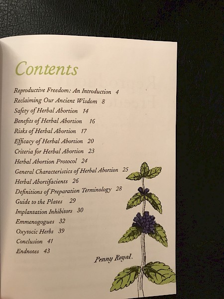 Note from the publisher: This is not a DIY manual. If you need to terminate a pregnancy, we advise getting a medical abortion where accessible, which is safer and more reliable. Even in places where abortion is illegal, women can obtain specific types of pharmaceuticals to induce miscarriage. However, we also believe that the history and knowledge of herbal methods should be preserved.