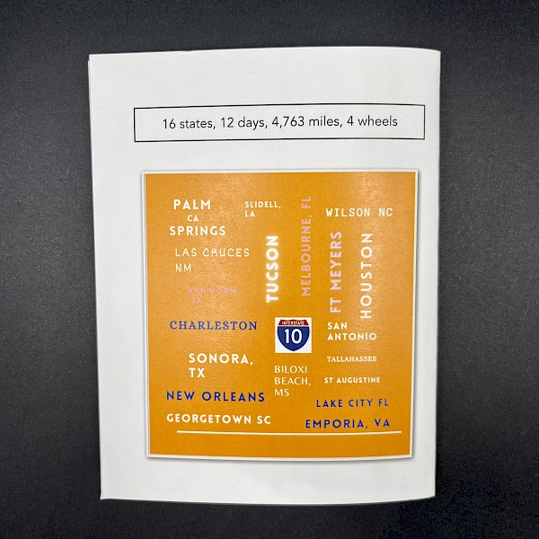 A whirlwind trip across the U.S. in a home-renovated camper van. Winter in the desert, with a dog, solar panels flying onto the highway.