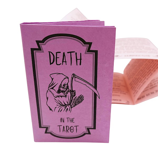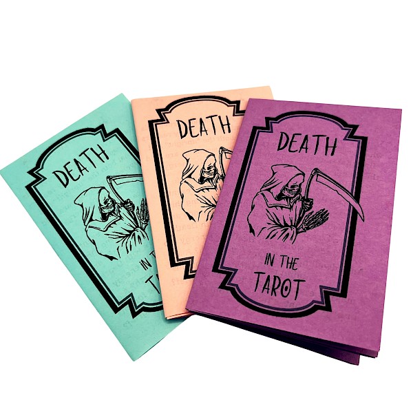 Death in the Tarot reframes the "worst" or "scariest" card in the tarot deck, offering a wide array of interpretations and support for transformation. A zine for all levels of tarot experience (including none at all).