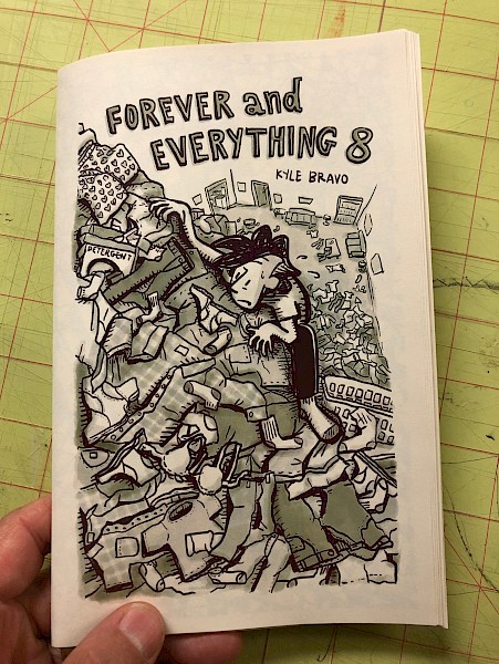 The most gorgeous issue yet of Kyle Bravo's long-running autobiographical comics zine, Forever and Everything. These are comics about confronting life's mountains of laundry and piles of sticks. Kyle perfectly captures the absurdist daily loops of human existence, the good intentions and bad decisions, the struggle of being an artist and a responsible human, the struggle of being human.