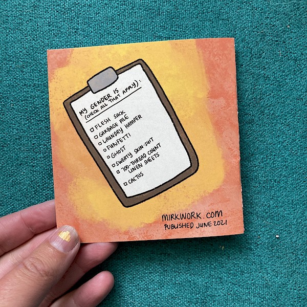 Check out the revised and updated second edition! A relatable comic zine from Sarah Mirk about how the pandemic threw everything into question. How the Pandemic Made Me Rethink Gender manages to be a sweet, serious, and humorous meditation on what it means to perform gender when the audience is gone.