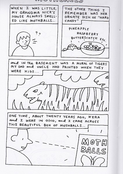 Mothballs at Grandma's house, lots of great cat and dog comics, the illustrated monarch butterfly life-cycle, shrews through history, letters to the editors from Megan Kelso and more, a Top 40, and so many interesting surprises.