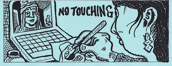 No Touching is a collection of poems that reflects on our pandemic year (a year without widely available reassuring hugs and shoulders to cry on). Edited by our own Gina Sarti, No Touching has contributions from Julia Edelman, Hannah Horovitz (Esoteric Bumper Stickers), Tatille Jackson, and V.Vale (RE/Search).