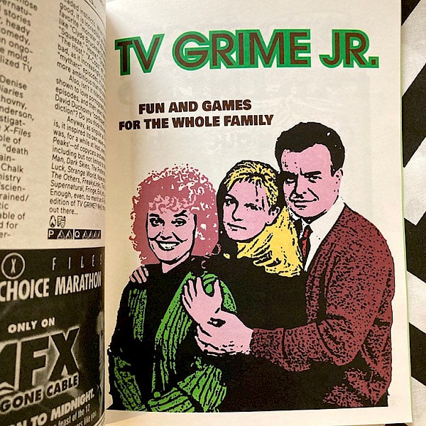 The brilliant and wild TV Grime is back again, this time with a whole issue dedicated to the beautifully strange cultural phenomenon of Twin Peaks and its lasting influence. Alongside rare vintage ads and "TV Grime Jr." games, TV Grime: The Twin Peaks Issue is an in-depth exploration of every series that followed, was inspired by, or is loosely related to Peaks, laid out in TV Guide's classic format.