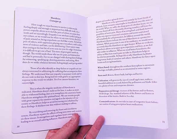 Written by Janet Kent, an herbalist, writer, and founder of Medicine County Herbs and the Terra Sylva School of Herbal Medicine. With original woodcut illustrations by Justseeds Artists’ Cooperative member Roger Peet.