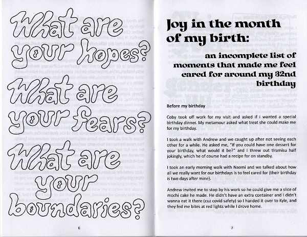 The new issue of Wanderer digs into "conquering fears, healing, polyamory, & gender feelings." There are adventures in Olympia, Tacoma, Portland, the Northwestern woods, and beyond. There's a very relatable piece about being a full-time working artist and how the business part begins to overshadow the art. Also a look at the first year of their great zine How to Support Your Non-Binary Family Member being in existence. So much more.