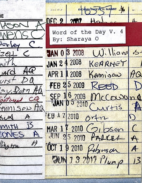 This issue is made up of words chosen by inmates at the prison library where Sharaya works. A small peek into a daily word-of-the-day workday ritual.