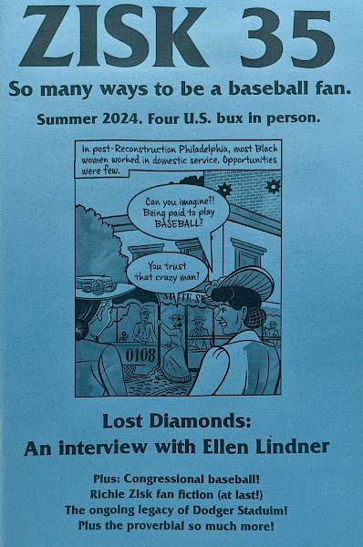 Continuing in their "so many ways to be a baseball fan" mission, Zisk brings aboard some of our favorite zinesters: Kayla Greet (One Punk's Guide to Star Trek) interviewing Ellen Lindner on her Lost Diamonds comic series, Jay Ruttenberg (The Lowbrow Reader) imagining God's response to athletes pointing skyward, Daryl Gussin (Razorcake) on bike accidents and family ties, Todd Taylor (Razorcake) continuing his Dodgers deep dive.